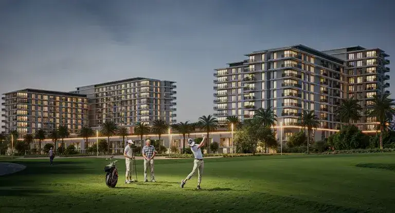 a new golf-course development in Dubai South surrounded by